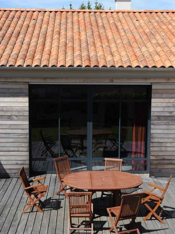 Pour le confort de tous, l'ensemble est équipé d'un chauffage par le sol sur aérothermie. Des menuiseries aluminium à galandage et des volets bois viennent animer la façade tout en protégeant de l'exposition Sud.